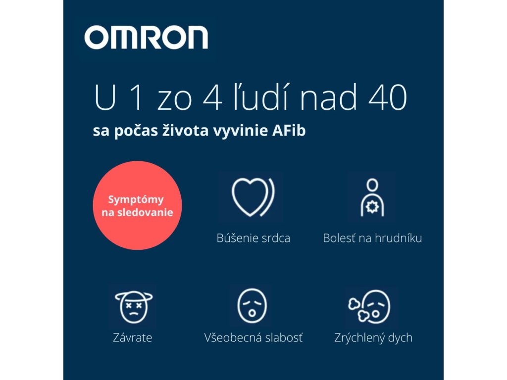 Tlakomery OMRON s funkciou Intellisense AFib pomáhajú túto poruchu odhaliť v domácich podmienkach jednoducho a spoľahlivo.