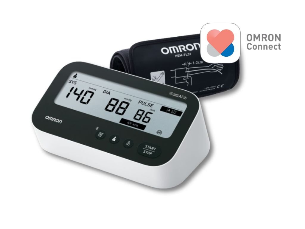 OMRON M4 Connect AFib je moderný tlakomer s detekciou fibrilácie predsiení, pohodlnou Intelli manžetou a Bluetooth pripojením k mobilnej aplikácii OMRON connect.