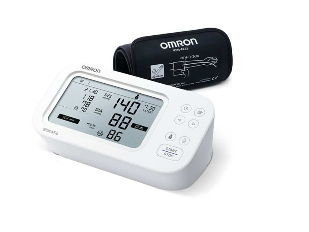 - funkcia Intellisense AFib - detekcia fibrilácie predsiení už z jedného merania krvného tlaku. Jedinečný algoritmus poháňaný AI teraz rozpoznáva aj náznaky AFib. Presnosť novej technológie OMRON bola testovaná s 12 zvodovým EKG. Tlakomery s funkciou Intellisense AFib mali citlivosť 95,1%, špecificitu 98,6% a presnosť 97%.